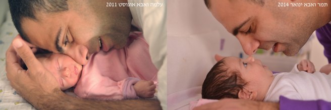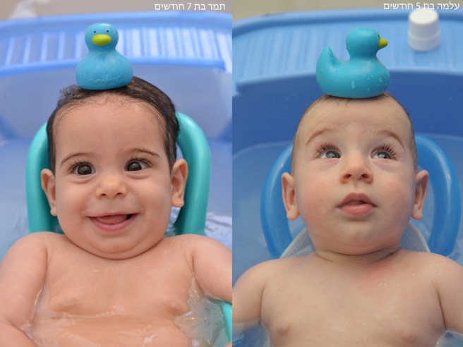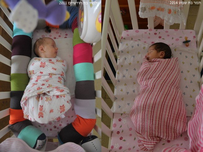כשתמר נולדה, כבר הייתי אמא של עלמה, ובימים הראשונים התייחסתי אליה כמו אל עלמה התינוקת. הנקתי אותה כמו את עלמה (הרבה זמן, וכל הזמן חשבתי שאולי היא עוד רעבה), הערתי אותה לאכול כמו את עלמה (עלמיק היתה פגית. תמרול דווקא נולדה בזמן ועם תאבון בריא ועייפות טבעית). השכבתי אותה לישון כרוכה בחיתול כמו את עלמה (את עלמיק זה הרגיע, היא ישנה ככה חודשים. תמרול שנאה את זה ובילתה את כל הלילה בנסיונות לחלץ איברים. "אה אה אה אה אה…. חילצתי יד. עכשיו נתמיד ונחלץ עוד יד….אה אה אה אה אה אה אה. חילצתי! ועכשיו מסיבה!).