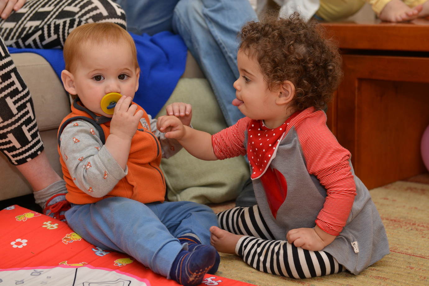 חברים עוד מהבטן, חברים ממצב שכיבה חסרי אונים על מזרן הפעילות, חברים לזחילה, לעמידה, לצעד הראשון. חברי אמת: חוטפים-מרביצים-מושכים-בוכים-חולקים-צוחקים-מדברים עוד לפני שיש ממש מילים.