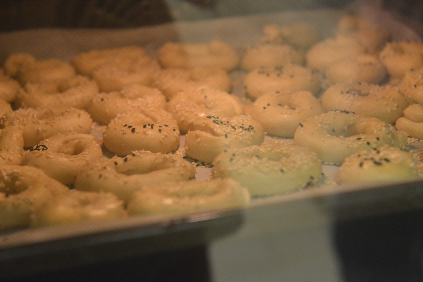 מגשים מגשים מהבילים וריחניים יוצאים בזה אחר זה מהתנור: פיתות קטנות, וכעכים פריכים, ומקלות מלוחים נפלאים (האהובים עלי ביותר).