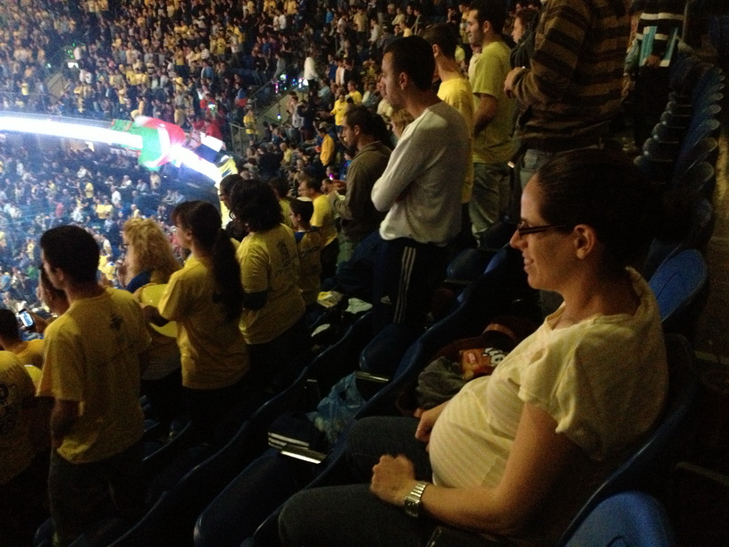 יש לו מנוי למשחקי מכבי, ובכל פעם שיש משחק מעניין / גיא מבריז לו הוא מציע לי להצטרף. זה באמת נחמד, אני מודה, כל האדרנלין וזה, אבל בדרך כלל אין לי כוח (למה לא לשבת בבית על המחשב אם כבר יש לי ערב פנוי?!). בפעם האחרונה שהלכתי זה היה בדצמבר 2013. עשרה ימים לפני שילדתי את תמר. בקושי עליתי במדרגות על ליציע (של החוליגנים ו) שלנו.