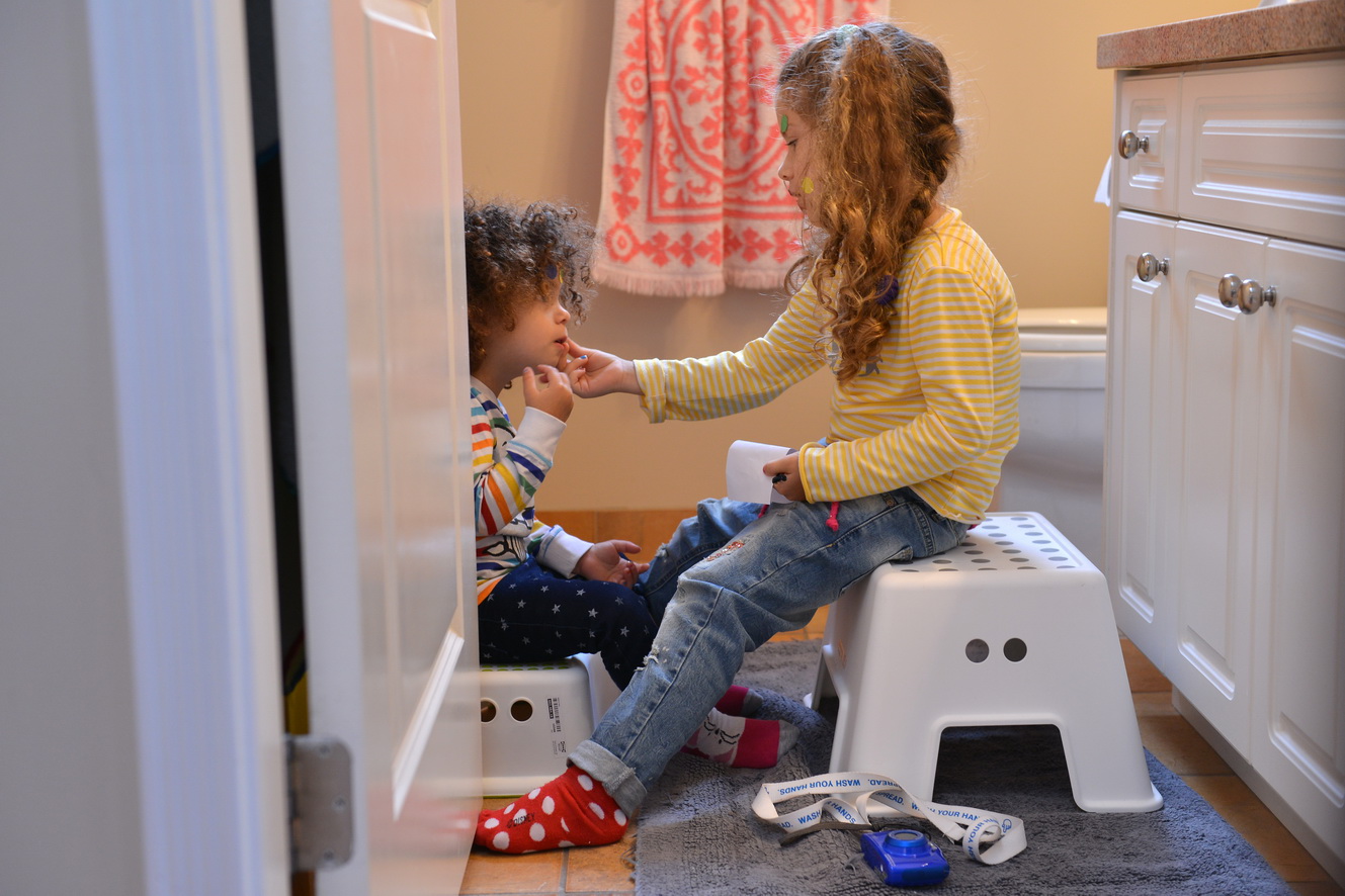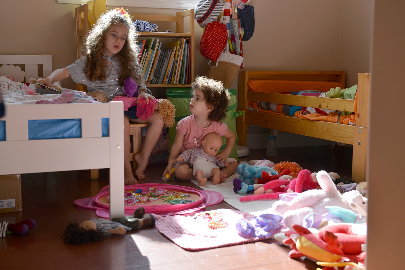 מפה לשם, מאז שהגענו לפה, הן הפכו לחבורה. הן משחקות המון ביחד: ממציאות, בונות, מפרקות, מכינות ספרים מאויירים, מכינות לי אוכל דמיוני. סביב לשולחן האוכל יש להן הווי שלהן, שכולל בדיחות פנימיות. במושב האחורי של האוטו יש כל הזמן שיחות, שירים (וריבים), וגם באמבטיה שוטפות אחת את השניה ומטפלות בלוויתן המתנפח שלהן. חלק מאלה תמיד היו. לאחרונה פשוט יש להן עולם שלם משל עצמן: "עלמה אני צריכה פיפי! תביאי לי את השרפרף!" – אני שומעת את תמרול צועקת מהשרותים. "בואי תמר, אני אנעל לך את הכפכפים" – מארון הנעליים בכניסה. "בואי נבנה ביחד חללית" – מחדר העבודה/משחקים. "אני יכולה למרוח אותך" – מורחות בקרם שיזוף אחת את השניה. "בואי נעשה לאמא ואבא הפתעה" – זוממות משהו בחדר השני.