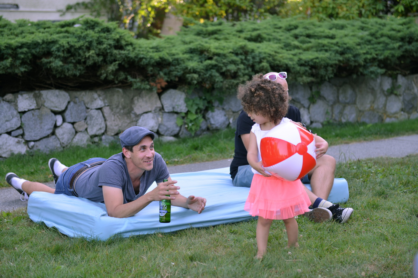 וגם בגלל שהגענו הנה לחופשת קיץ ארוכה בלי גן, בלי חברים, בלי כמעט ילדים שאנחנו מכירים (מכירים את הבנות של אחותי שעם כל הכבוד גדולות ועסוקות בענייניהן חוץ מבלשחק איתנו, ופוגשים ילדים דוברי אנגלית בגינה. הבנות מדברות איתם עברית, ועלמה רצה אלי כל רגע לבקש תרגום: "אמא – איך אומרים בואי אחרי?" "איך אומרים זאת היא תמר?" שפה זה לא ממש מכשול בין ילדים, אבל זה תמיד רק לזמן קצר ואז הם הולכים).
