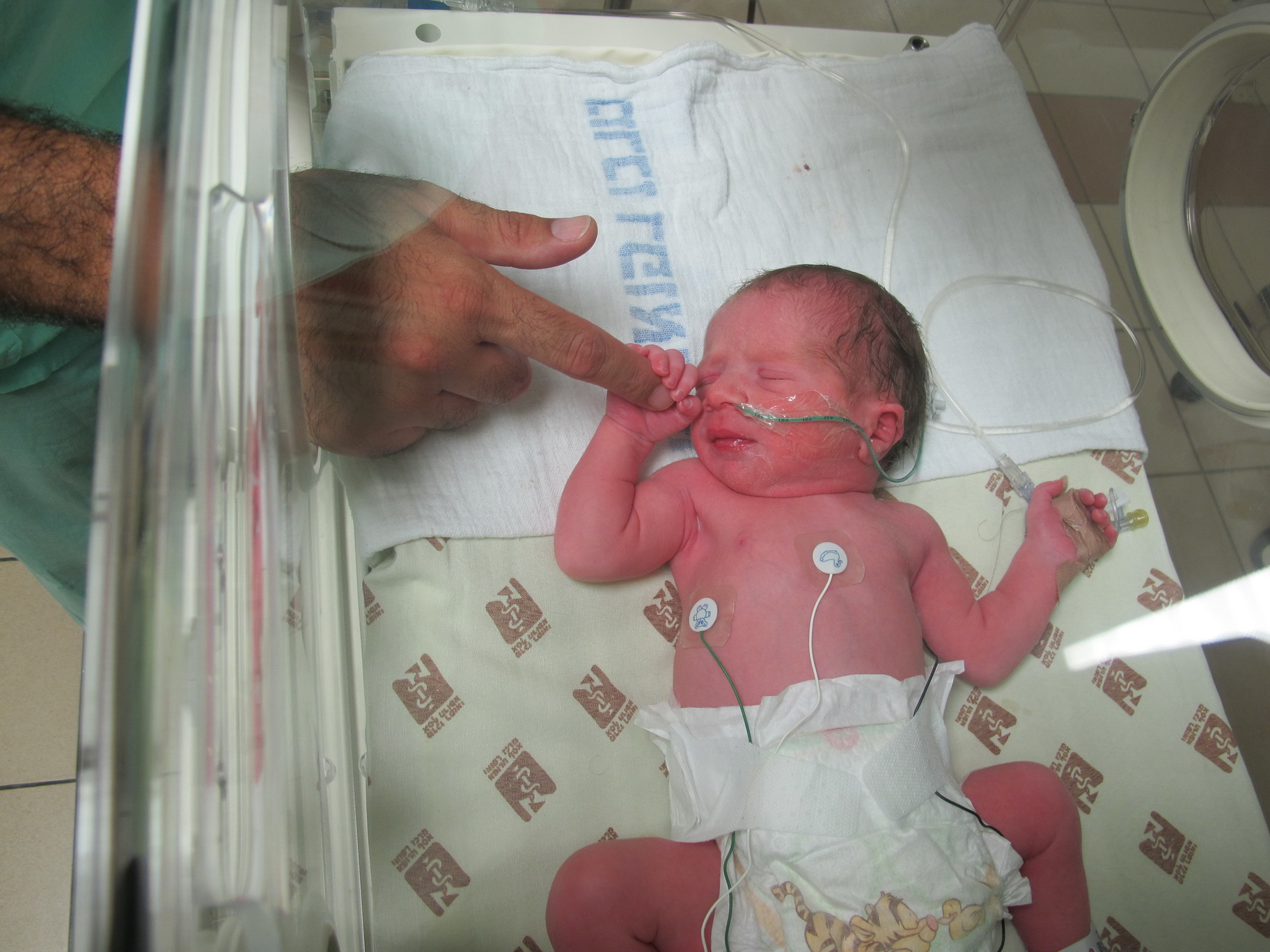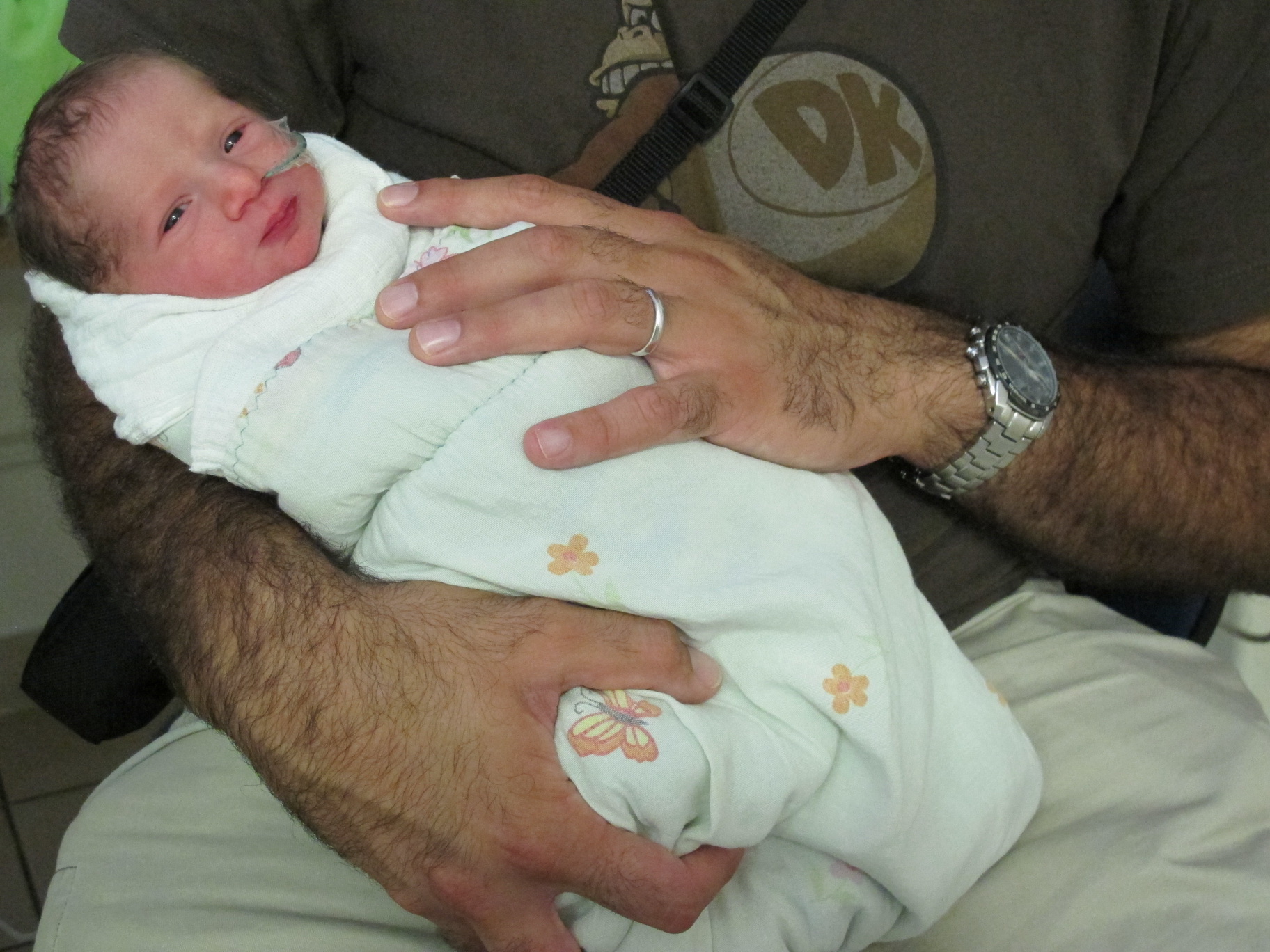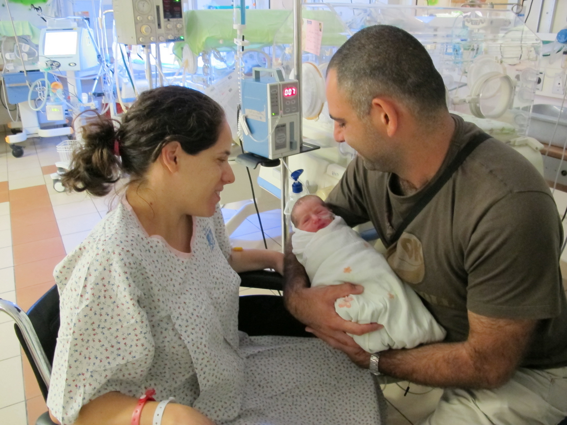 עלמה נולדה בשבוע ה-34 להריון בניתוח קיסרי, לאחר ש"מיעוט מי שפיר" הפך באחת ל-"אין מי שפיר, נכנסים לניתוח". אני זוכרת את השוק, וכמה שבכיתי, ושפחדתי נורא, אבל בעיקר על עצמי. לא האמנתי למה שקורה, לא הצלחתי לעכל את השינוי שקרה לי בבוקר אחד, מהריונית שמחה ליולדת כאובה, בלי עוברית בבטן, עם תינוקת מאושפזת שתי קומות מעל… כל ההריון דיברתי איתה, הרגשתי אותה, חוויתי אותו ביחד איתה, ובבת אחת היא הוצאה ונלקחה ממני – לפגייה. והאמת – שבכלל לא רציתי לראות אותה. כשהראו לי אותה בסוף הניתוח פחדתי להסתכל. אחרי שמונה שעות התאוששות ראשונית הורדתי מהמיטה ונילקחתי לפגייה לפגוש אותה.