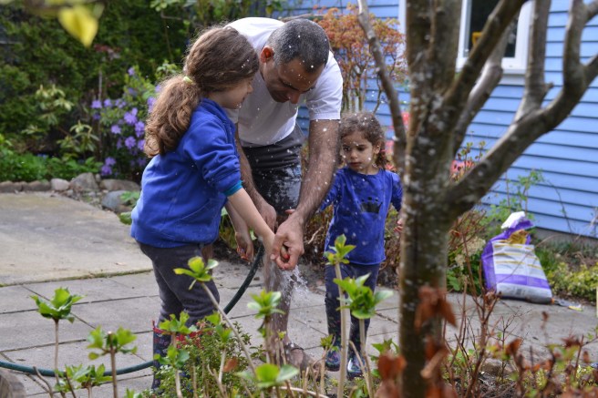 השלג עף ומסתחרר בשיגעון לכל הכיוונים, ואנחנו מסתכלים בו, המומים.
