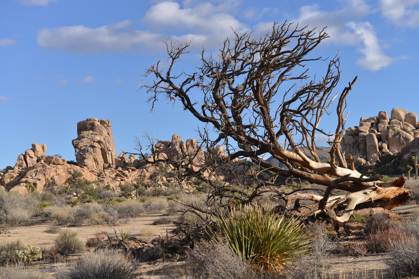 הגענו לג'ושוע-טרי נשיונל פארק אחר-הצהריים. נכנסנו לפארק, ונסענו ברכב פנימה, בכביש מפותל. משני הצדדים נוף מדברי צחיח, שונה מאוד מכל מדבר שראיתי עד כה. דרך החלון רואים את עצי הג'ושוע, בהתחלה מעטים ונמוכים, וככל שמטפסים בגובה גם העצים גובהים. עצים מוזרים הם עצי הג'ושוע . כמו קקטוסים ענקיים, אבל, בעצם לא. כמו צמחי מדבר מוזרים. כמו עצים שיצאו משליטה, שלא החליטו לאן הם רוצים להגיע.