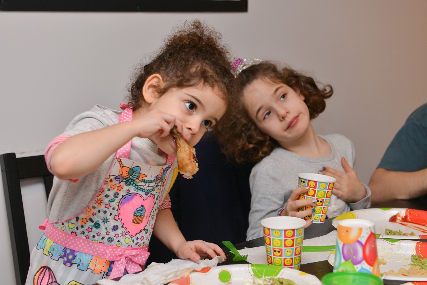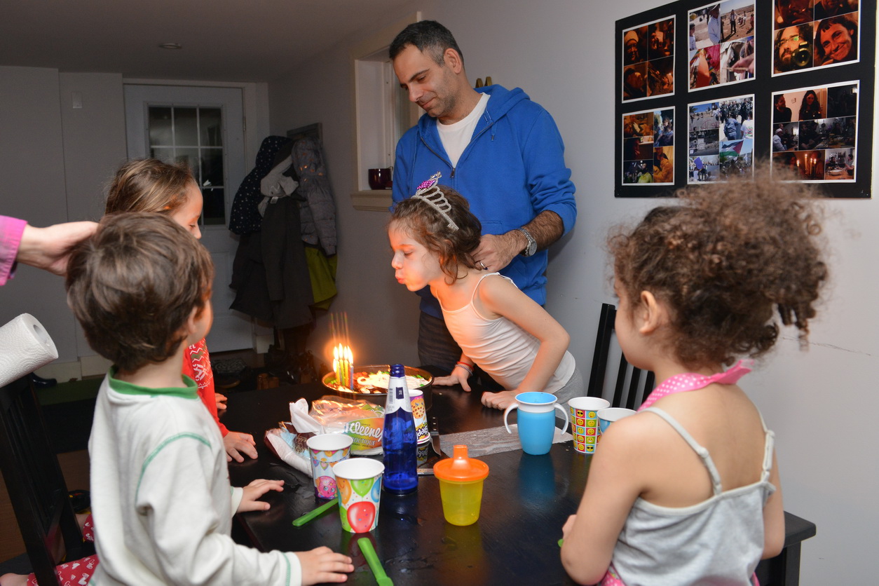 הלכנו שמחים וטובי לב למסיבה ב-JCC, אני שוב צילמתי את המחופשים, רם הסתובב אומלל אחרי הבננות הנהנות ואסף אחריהן מעילים, מצנפות, זקן, חגורה, אזני-המן חצי אכולות, רעשנים שהן הכינו ועוד ועוד. רק תמר המשיכה לצעוד בנעלי העקב מפלסטיק שלה, כמו נסיכה אמיתית.