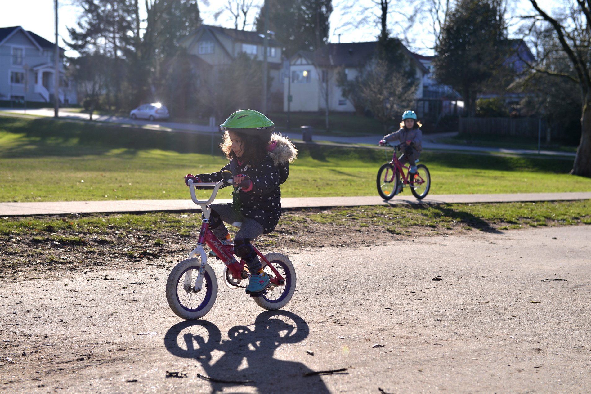 ילדה שניה מחליטה שהגיע הזמן לרכוב על אופניים. בלי גלגלי עזר. בגיל ארבע ודקה. מחליטה, ומתחילה.
