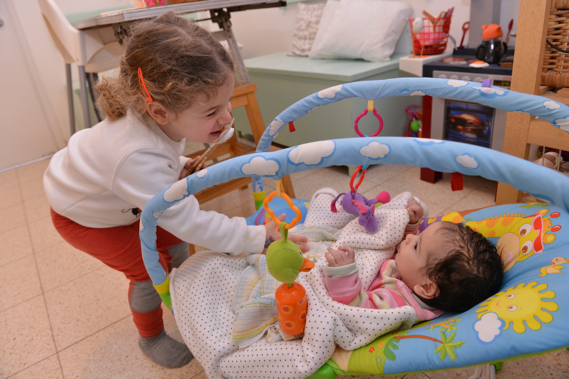 לילדה שניה יש המון צעצועים ומשחקים שהיו של הילדה הבכורה, אבל יותר מכל הצעצועים היא הכי אוהבת להסתכל על אחותה. בתור תינוקת – עם כל הכבוד לטיולים וצעצועים ומשחקים, הכי כיף שאחותה מגיעה הביתה. בשביל מה צריך צעצועים מעודדי זחילה / הליכה / שקר כלשהו? הכי מעניין זה להסתכל על עלמה.