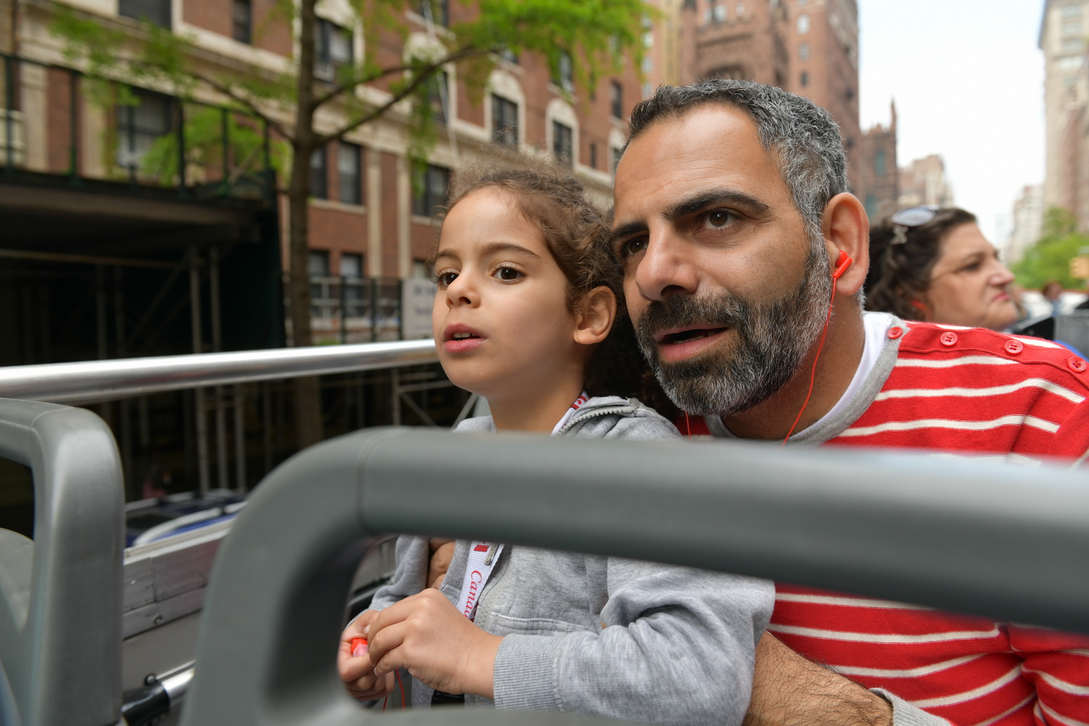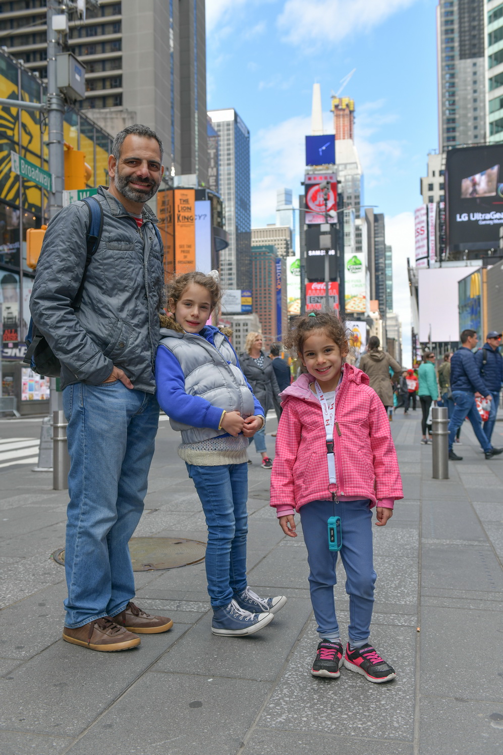 מוקדי תיירות: לפסל החירות ידענו שאנחנו חייבים לשוט, וגם לטייל לרגליו, כי הבנות למדו עליו בבית הספר ומבחינתן ניו-יורק = פסל החירות. כדאי לקנות מראש כרטיסים, להגיע מוקדם, ולקחת בחשבון שגם בשבוע הכי אוף-סיזן בשנה, יש תור של שעה למעבורת. קחו בחשבון, לא אמרתי לוותר. האמפייר-סטייט-בילדינג היה בבלוק של המלון שלנו, אז לשמחתינו ביום שבו יצאה השמש הגענו ממש מוקדם והצלחנו לעלות לתצפית בראש הבניין בלי תור משמעותי. לכיכר טיימס הלכנו מספר פעמים, בעיקר כי בפעם הראשונה הבנות היו כל-כך עייפות שלא נראה לנו שהתרשמו מספיק מהטירוף, אז חזרנו לשם שוב, לוודא שהן מבינות את גודל השגעת. ולגבי הסיבוב באוטובוס התיירים עם הגג הפתוח…. לא חשבתי שבחיים יתפסו אותי על אוטובוס כזה בניו-יורק ("הייתי פה כבר חמש פעמים" "אנחנו כבר יודעים בעצמינו לאן כדאי ללכת בניו-יורק""הכי כיף להרגיש את העיר ברגליים" – מגוון תירוצים שחשבתי ואמרתי) אבל הבננות מאוד מאוד רצו לעלות עליו. וכך מצאנו את עצמינו בנסיעה של כמעט שלוש שעות בפקקים של מנהטן, על גג של אוטובוס פתוח לרוח הקרה, מאזינים לשירים והסברים על העיר. היה מאוד נחמד (וגם גילינו, ברבע שעה האחרונה, שיש את כל ההסבר בעברית באחד מערוצי השמע).