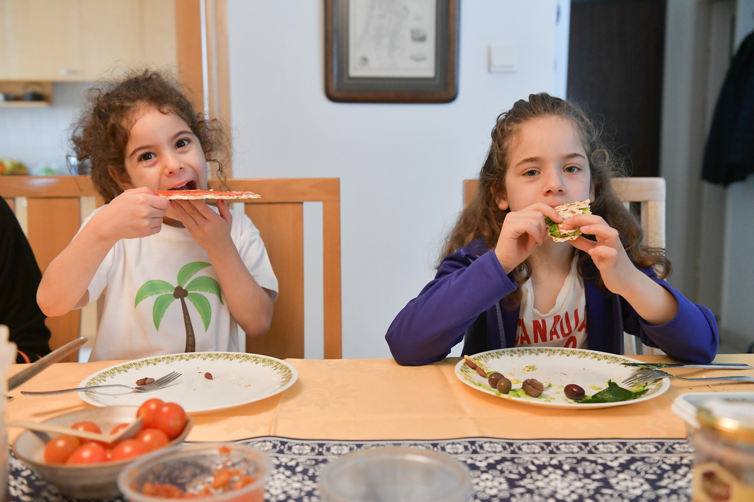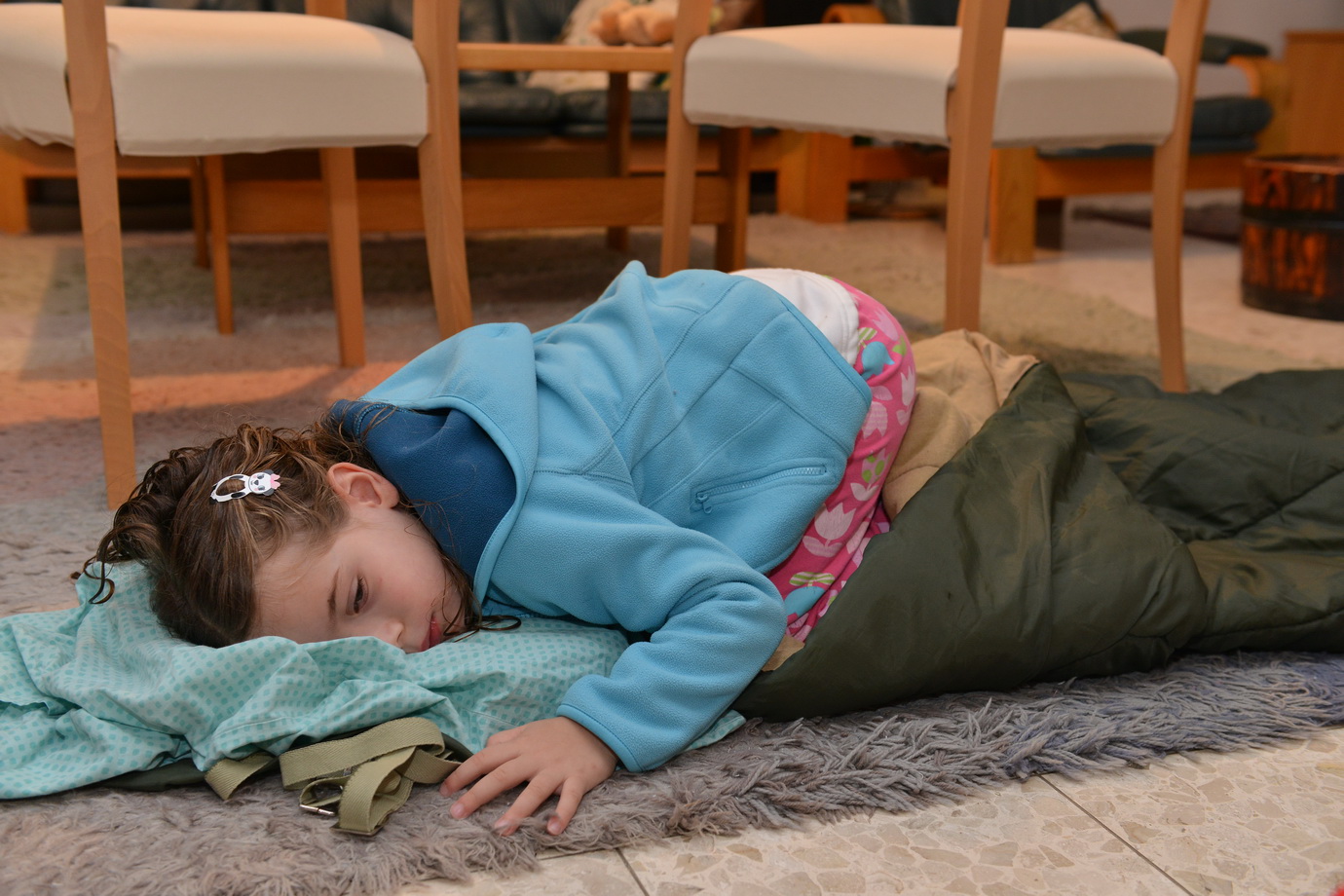 המארגנים המעולים חילקו אותנו מראש לשתי קבוצות שאחראיות על האוכל. קבוצת "ארוחת הערב" דאגה להכין בשר על האש, המון סוגי סלטים ותוספות ועוגות ותה למבוגרים שנשארו לפטפט אחרי שהילדים נרדמו (סופסוף. קשה להרדם. לילה ראשון בשק שינה, הכל כך כך מרגש מסביב, וכל רגע מישהו נכנס או יוצא מהחדר. לחשתי לעלמיק שירי ערש באוזן ושמענו גם את השירים של הורים אחרים, עד שהיא נרדמה. תמרול ורם חזרו למרכז בערב כי רם עבד בשבת).